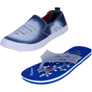 Indistar Mens Multicolored Canvas Sneakers And Haiwaii House Slippers (Pack Of 2)