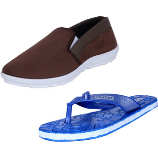 Indistar Mens Multicolored Canvas Sneakers And Haiwaii House Slippers (Pack Of 2)