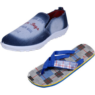 Indistar Mens Multicolored Canvas Sneakers And Haiwaii House Slippers (Pack Of 2)