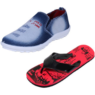 Indistar Mens Multicolored Canvas Sneakers And Haiwaii House Slippers (Pack Of 2)