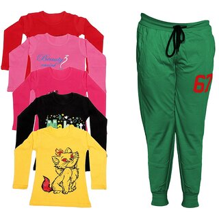 IndiWeaves Girls Combo Pack 6 (Pack of 5 Full Sleeves T-Shirts and 1 Lowers/Track Pant )Multicolor