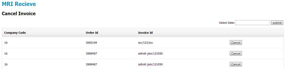 3. Cancel Invoice screen