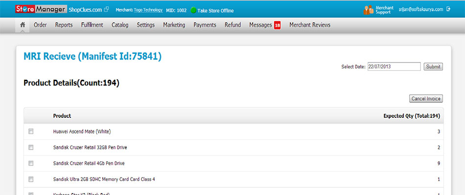 - Merchant can cancel invoice number associated with an order number
