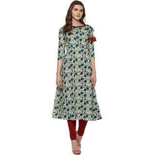 Know MoreJanasya Beige Floral Print 3/4 Sleeves A-Line Cotton Kurti