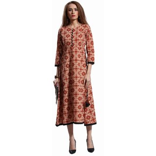 Know MoreJanasya beige embellished 3/4 sleeves A-Line cotton kurti