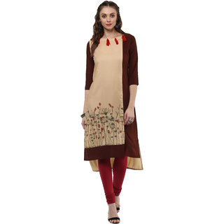 Know MoreJanasya beige digital print 3/4 sleeves high low hemline crepe kurti