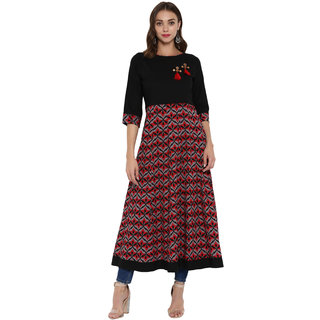 Know MoreThis stylish geometric print kurta from janasya is made of cotton and comes in an attractive black color. It features 3/4th sleeve ,high low hemline, round neck and it is ankle length kurta that is suitable for festive occasions. Team it with matching leggings for a chic look.