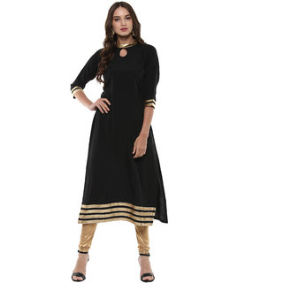 Know MoreJanasya Black Solid 3/4 Sleeves Straight Crepe Kurti