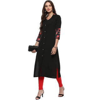 Know MoreJanasya black embellished 3/4 sleeves straight crepe kurti