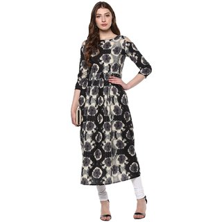 Know MoreThis stylish geometric print kurta from janasya is made of cotton and comes in an attractive black color. It features 3/4th sleeve ,flared, round neck and it is ankle length kurta that is suitable for festive occasions. Team it with matching leggings for a chic look.