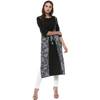 Know MoreJanasya black abstract print 3/4 sleeves straight crepe kurti