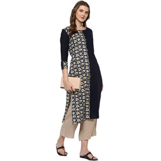 Know MoreJanasya Blue Polka Print 3/4 Sleeves Straight Cotton Kurti