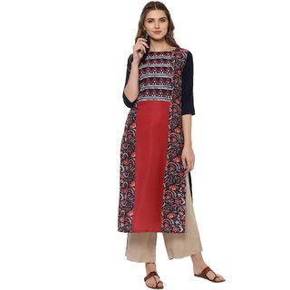 Know MoreJanasya Blue Floral Print 3/4 Sleeves Straight Crepe Kurti