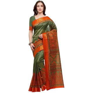 Know MoreJanasya party wear mehendi printed kanjivaram silk saree, comes with mehendi kanjivaram silk blouse piece. Saree length 5.5 mtr with 0.80 mtr unstitched blouse piece.