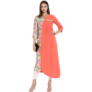 Know MoreThis stylish digital print kurta from janasya is made of crepe and comes in an attractive multi color. It features 3/4th sleeve ,a-line, round neck and it is ankle length kurta that is suitable for festive occasions. Team it with matching leggings for a chic look.