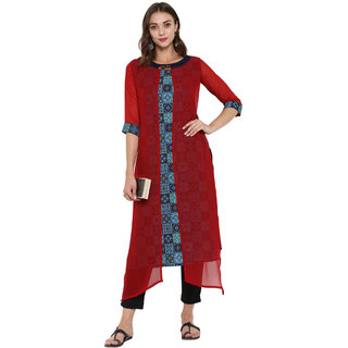 Know MoreThis stylish geometric print kurta from janasya is made of crepe and comes in an attractive multi color. It features 3/4th sleeve ,indo western, round neck and it is calf length kurta that is suitable for festive occasions. Team it with matching leggings for a chic look.