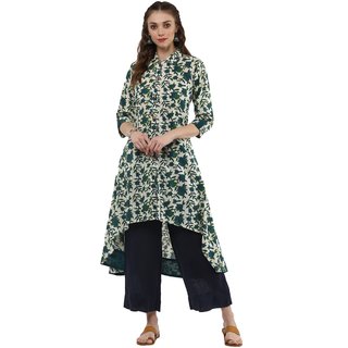 Know MoreJanasya Multicolor Floral Print 3/4 Sleeves High Low Hemline Cotton Kurti