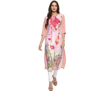Know MoreJanasya multicolor digital print 3/4 sleeves straight crepe kurti