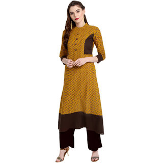 Know MoreThis stylish kurta from janasya is made of cotton and comes in an attractive mustard color. It features 3/4th sleeve , a-line, closed neck and it is calf long kurta that is suitable for casual occasions. Team it with matching leggings for a chic look.