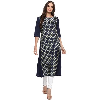 Know MoreJanasya navy blue geometric print 3/4 sleeves A-line crepe kurti