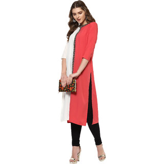 Know MoreJanasya Pink Solid 3/4 Sleeves Straight Crepe Kurti