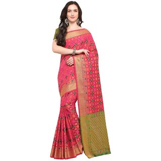 Know MoreJanasya party wear pink patola silk saree, comes with green patola silk blouse piece. Saree length 5.5 mtr with 0.80 mtr unstitched blouse piece.