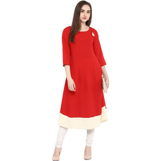 Know MoreJanasya Red Solid 3/4 Sleeves A-Line Crepe Kurti