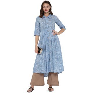 Know MoreThis stylish kurta from janasya is made of cotton and comes in an attractive sky blue color. It features 3/4th sleeve ,flared & high low hemline, chinese collar neck and it is calf length kurta that is suitable for festive occasions. Team it with matching leggings for a chic look.