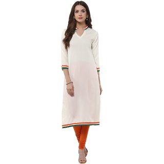 Janasya white bordered printed crepe kurti with long sleeves.