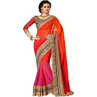 With Blouse Piece Fashion Sari Multicolor Fabric : Faux Georgette Saree Work : Heavy Embroidered Blouse Work : Heavy Embroidered