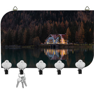 MDF based key holder with Digital Print Matte Laminated and metal keys folded to be used as hooks. This can hang onto the wall using the 2 sided hooks already installed or hanged using the hooks provided separately in the package.