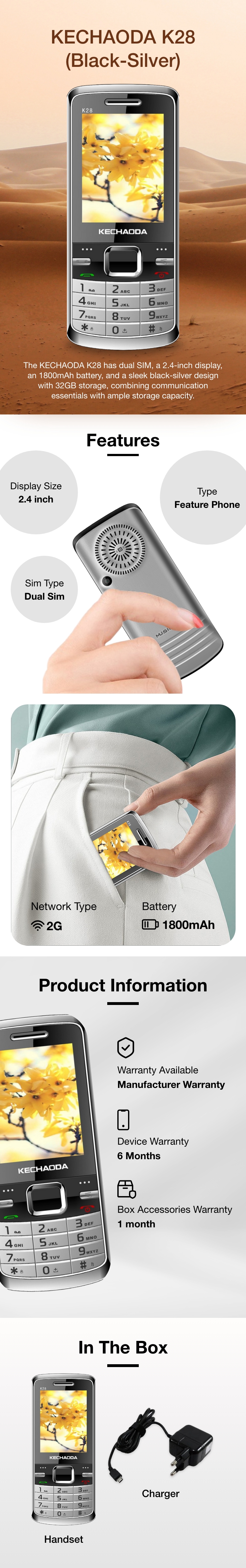 | Box Contents | : Battery, Charger, Handset |