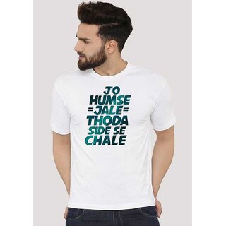 Kryptar Men's White Printed Round Neck T-Shirt