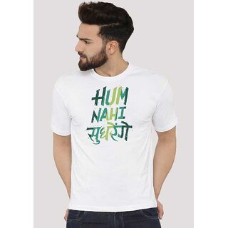 Kryptar Men's White Printed Round Neck T-Shirt