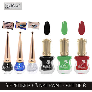 La Perla (LP-BSI-NPELCMB06-411) CH Piano Multicolor Nail Paint and BSI Eyeliner Combo (Pack of 6)