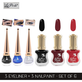 La Perla (LP-BSI-NPELCMB06-461) CH Piano Multicolor Nail Paint and BSI Eyeliner Combo (Pack of 6)