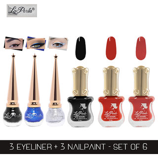 La Perla (LP-BSI-NPELCMB06-475) CH Piano Multicolor Nail Paint and BSI Eyeliner Combo (Pack of 6)