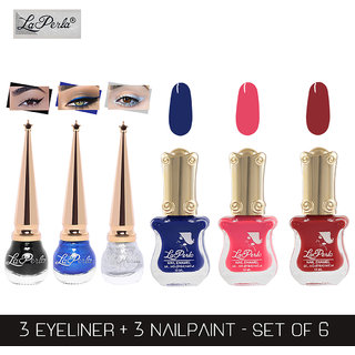 La Perla (LP-BSI-NPELCMB06-504) CH Piano Multicolor Nail Paint and BSI Eyeliner Combo (Pack of 6)