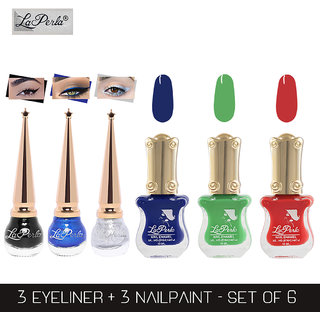 La Perla (LP-BSI-NPELCMB06-519) CH Piano Multicolor Nail Paint and BSI Eyeliner Combo (Pack of 6)