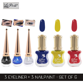 La Perla (LP-BSI-NPELCMB06-532) CH Piano Multicolor Nail Paint and BSI Eyeliner Combo (Pack of 6)