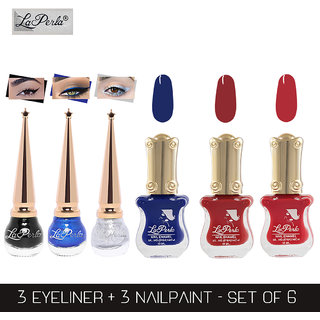 La Perla (LP-BSI-NPELCMB06-551) CH Piano Multicolor Nail Paint and BSI Eyeliner Combo (Pack of 6)