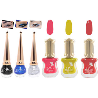 La Perla (LP-BSI-NPELCMB06-699) CH Piano Multicolor Nail Paint and BSI Eyeliner Combo (Pack of 6)