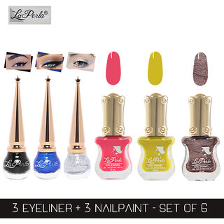 La Perla (LP-BSI-NPELCMB06-702) CH Piano Multicolor Nail Paint and BSI Eyeliner Combo (Pack of 6)