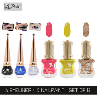 La Perla (LP-BSI-NPELCMB06-703) CH Piano Multicolor Nail Paint and BSI Eyeliner Combo (Pack of 6)