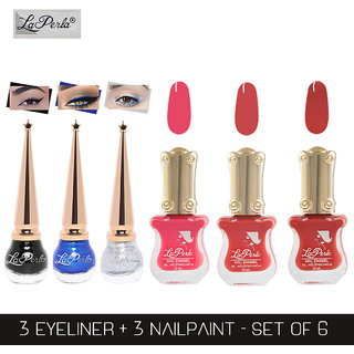 La Perla (LP-BSI-NPELCMB06-744) CH Piano Multicolor Nail Paint and BSI Eyeliner Combo (Pack of 6)