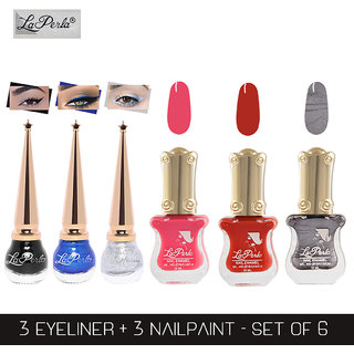 La Perla (LP-BSI-NPELCMB06-750) CH Piano Multicolor Nail Paint and BSI Eyeliner Combo (Pack of 6)