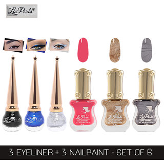 La Perla (LP-BSI-NPELCMB06-759) CH Piano Multicolor Nail Paint and BSI Eyeliner Combo (Pack of 6)