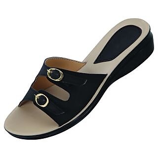 Make the roads your private ramp when you slip on this pair of slippers from the house. The heart and soul of this pair of black coloured slippers is the utterly comfortable sole. Club with a flowy midi dress for a contrasting feminine look.