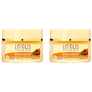 Lotus Herbals Papayablem Papaya-N-Saffron Anti-Blemish Cream  Fades Blemishes  For All Skin Types  50G ( Pack Of 2 ) Buy Lotus Herbals Papayablem Papaya-N-Saffron Anti-Blemish Cream Fades Blemishes For All Skin Types 50G ( Pack Of 2 ) online at a discounted price from ShopClues.com. Shop Fairness Cream products @ Lowest Prices. Shop now! Enjoy Free Shipping & COD across India. EMI options available with Easy Return/Replacement Polices. Lotus Herbals Product Id : 153646968