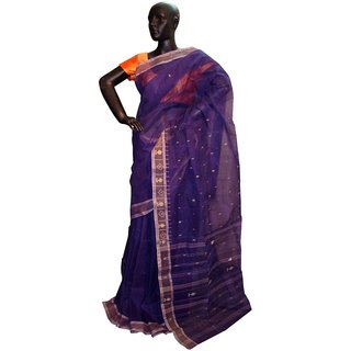 Tant woven handloom saree in finest pure cottonColor: navy blue with off white border with woven motif design in off white